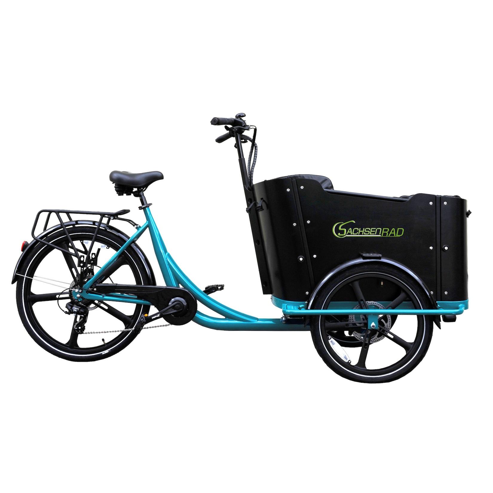 Hergestellt aus hochwertigem Aluminium, bietet dieses Lastenrad einen stabilen Rahmen, der ein Gesamtgewicht von bis zu 225 kg tragen kann. Trotz seiner Größe bleibt es leicht zu handhaben und sorgt für ein komfortables Fahrerlebnis.